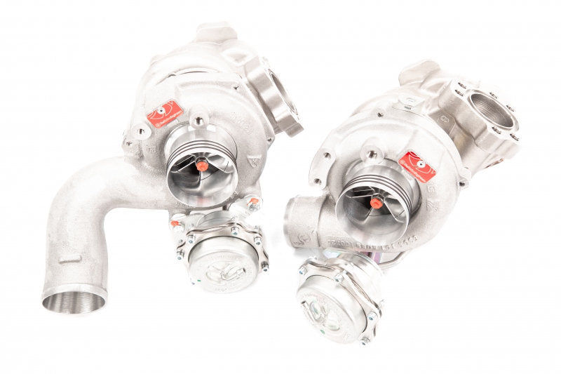 De uitlaatzijde is voorzien van TTE’s eigen 9-bladige high-flow low-mass turbines, ontworpen voor maximale gasdoorstroming en minimale tegendruk. Een versterkt motorsport-lagersysteem zorgt voor langdurige stabiliteit, terwijl de turbo’s individueel uitgebalanceerd worden op hoge snelheid tot 250.000 tpm en geleverd met een officieel balansrapport.